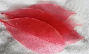 一种永久收藏叶子的方法。将树叶在碱性溶液里浸泡,去除叶肉,然后把剩下的叶脉上色即可。