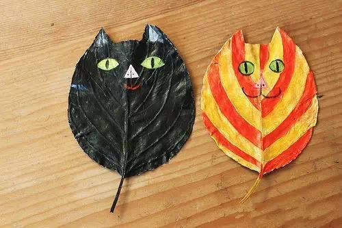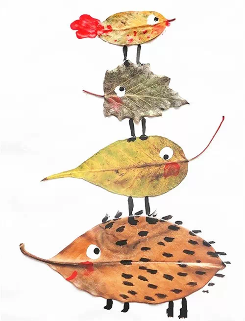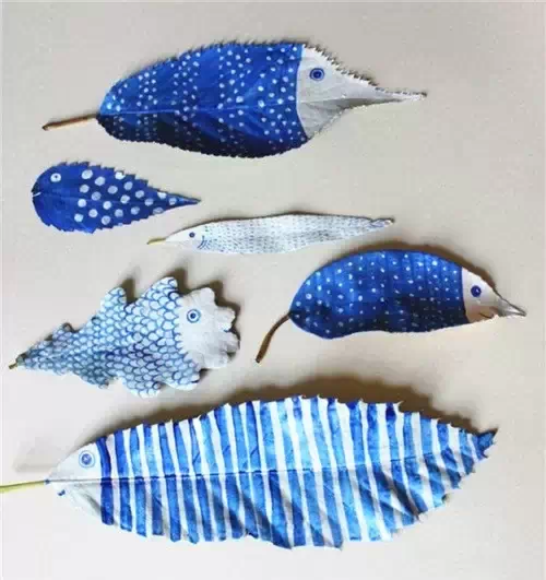 利用树叶本身的形状和脉络,涂上颜料或用喷漆印出图画,会有意想不到的好效果。