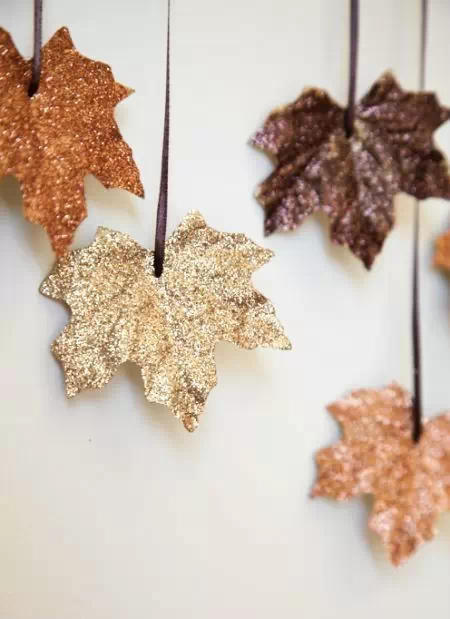通过在树叶上粘贴金粉,把树叶压平后放入相框等方式,将树叶变成家中的漂亮装饰物。