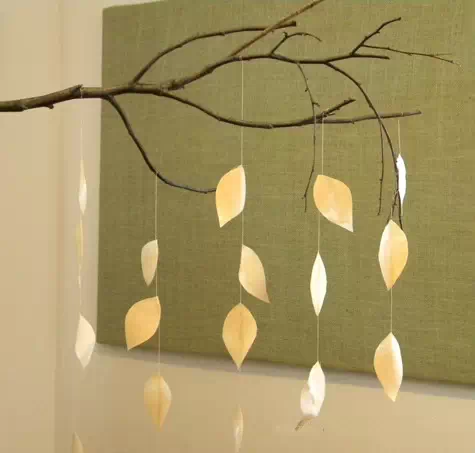 也可以沿着落叶的轮廓用纸剪出模版来,然后复制,悬挂起来做装饰。