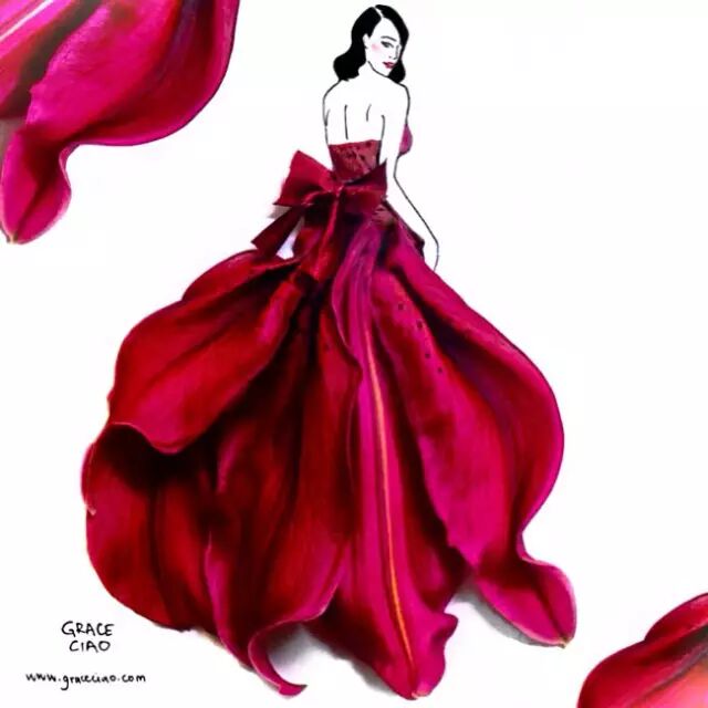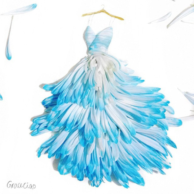 22岁的新加坡学生 Grace Ciao 用花瓣做成一件件美丽的时尚服装,集合时尚的人物插画,犹如一出唯美的时装秀