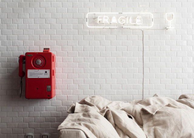 房子的主人透出忠于复古的情节,白色的地铁砖,复古的红色SMEG(斯麦格)冰箱,挂式老电话机…让整个家更加有味。